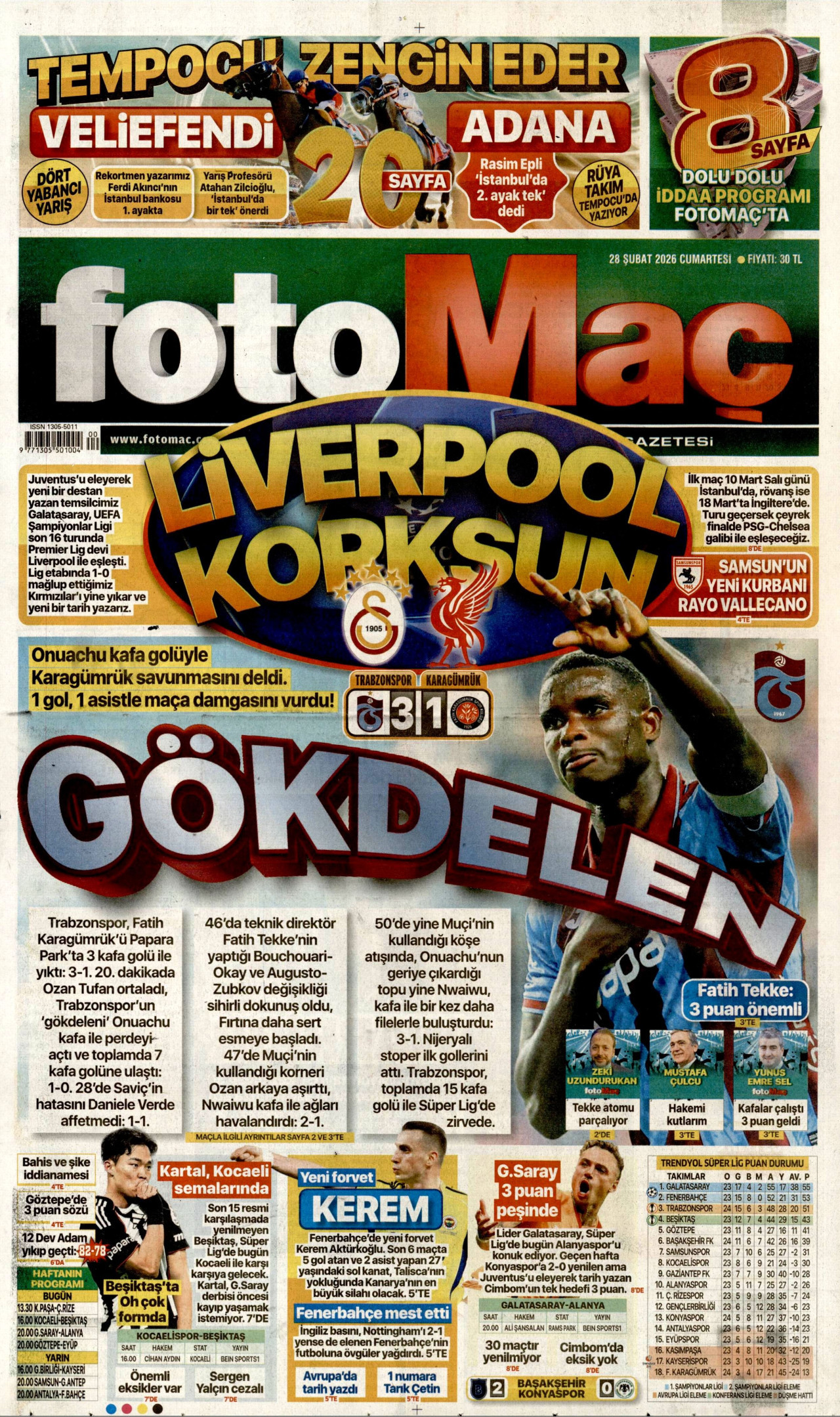 FOTOMAÇ Gazetesi 28 February 2026, Saturday Günü Manşeti